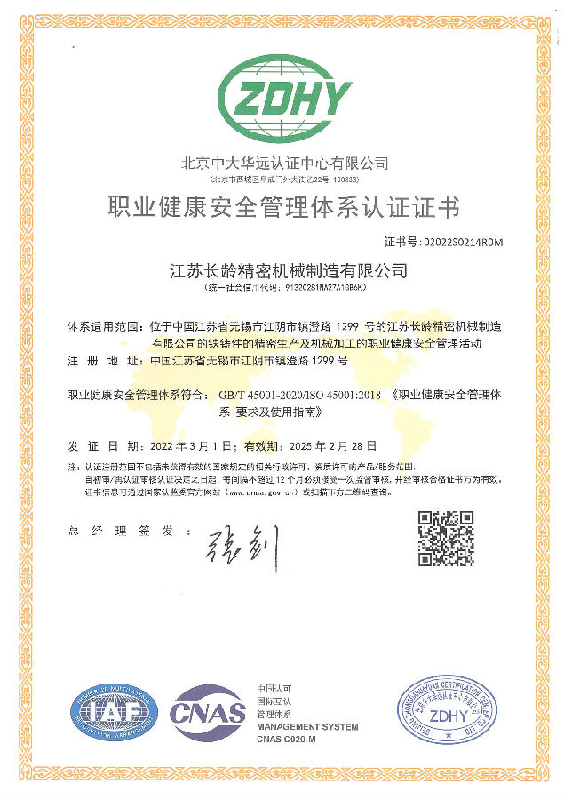 ISO45001:2018 职业健康安全证书